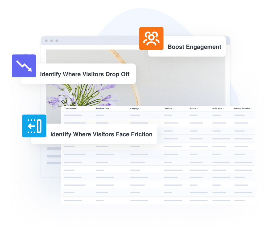 Instantly access your User Journey report and view key purchase details, including UTM parameters, transaction IDs, purchase dates, order totals, steps to purchase, and more with ease – no need to build complex reports.