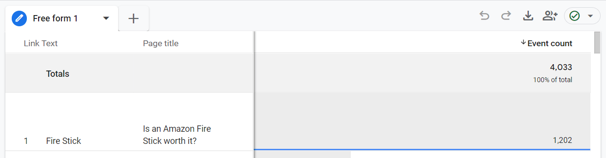 That’s it! You’ve built your custom affiliate link report and you can now see which links got clicked on which pages on your site. Keep in mind, Event count = clicks.
