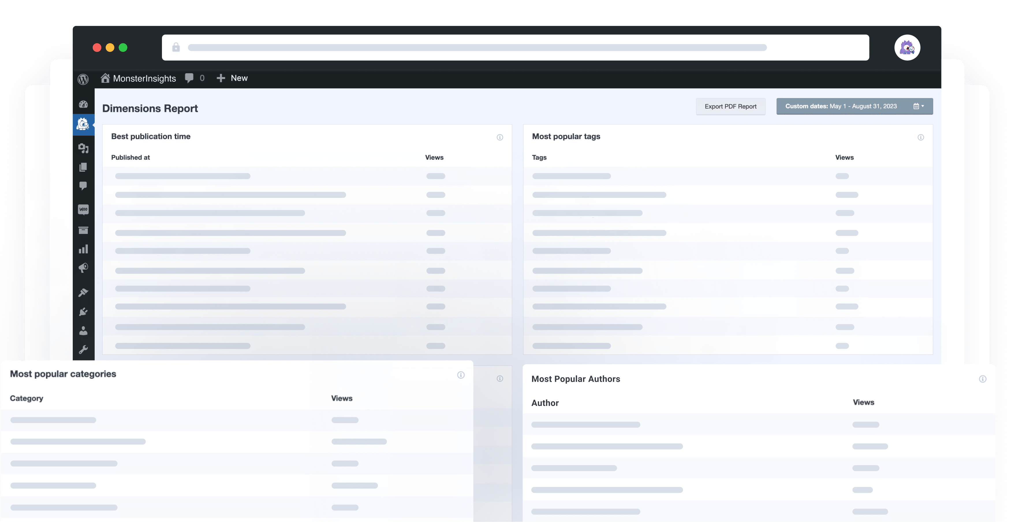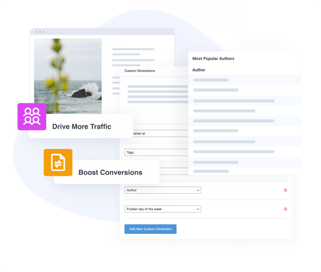 If you are a Publisher, custom dimensions let you dive into the details of your site’s content like never before. Monitor how different authors, categories, tags, or even publishing times impact your traffic – all from your WordPress dashboard.