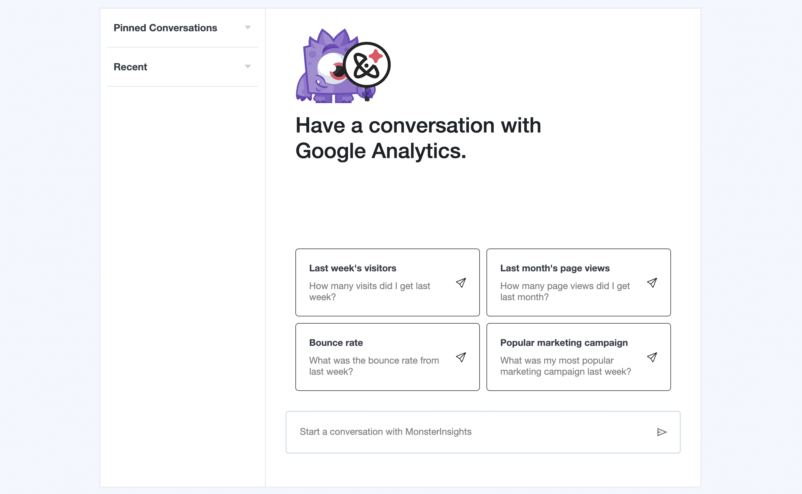 Talk to your data for more in-depth insights via the Conversations AI feature at Insights » Conversions AI.