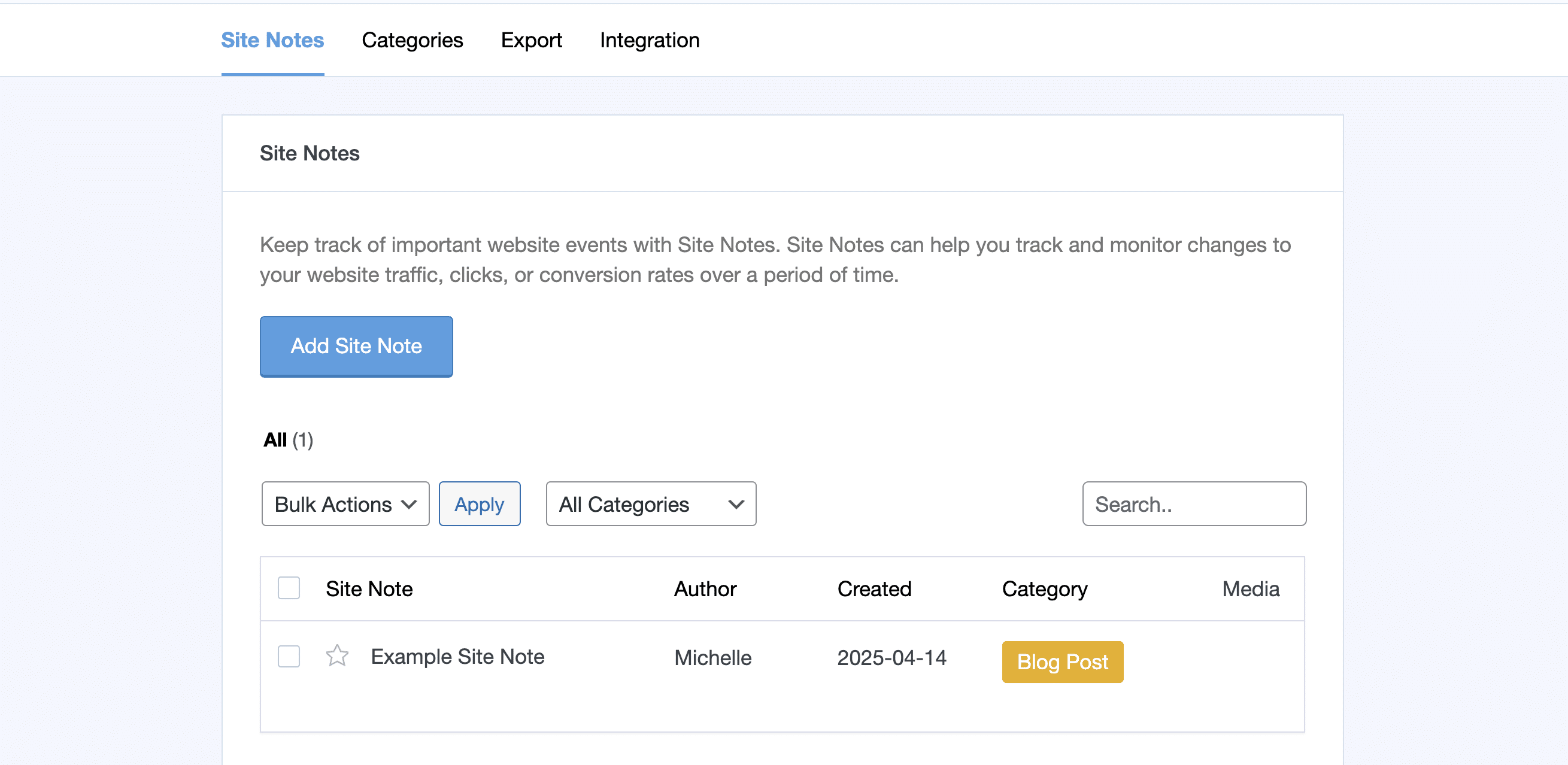Add site notes at Insights » Site Notes whenever you make a change on your website, such as running a promotion to publish a blog post, to better keep track of changes affecting your data.