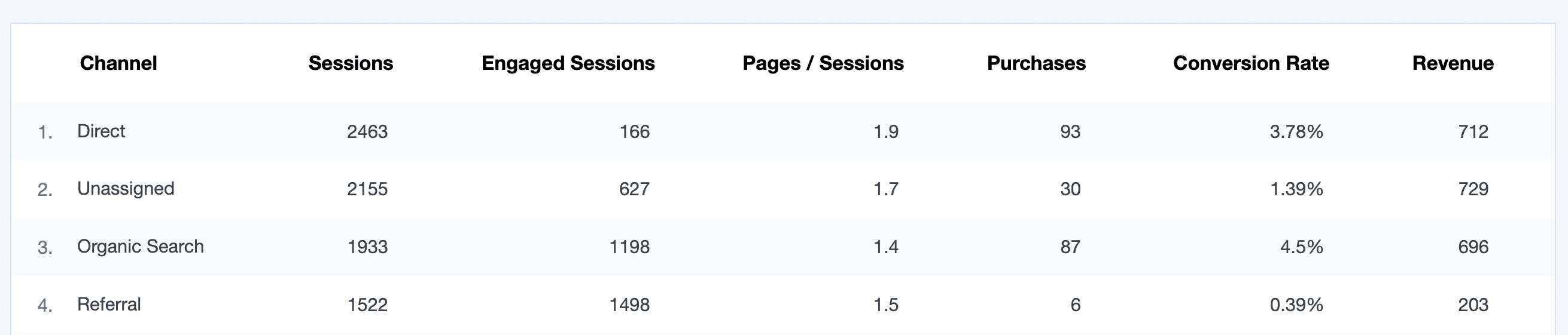 View the effectiveness of various acquisition strategies or entry points to your website, based on visitor volume, engagement, user interest, and sales if you have an online store.