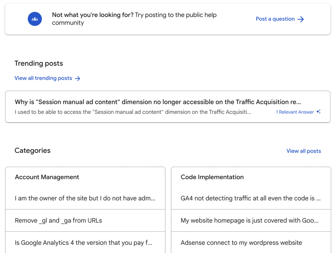 Within your Google Analytics dashboard, you have another valuable resource at your disposal: the Google Analytics Help Community.