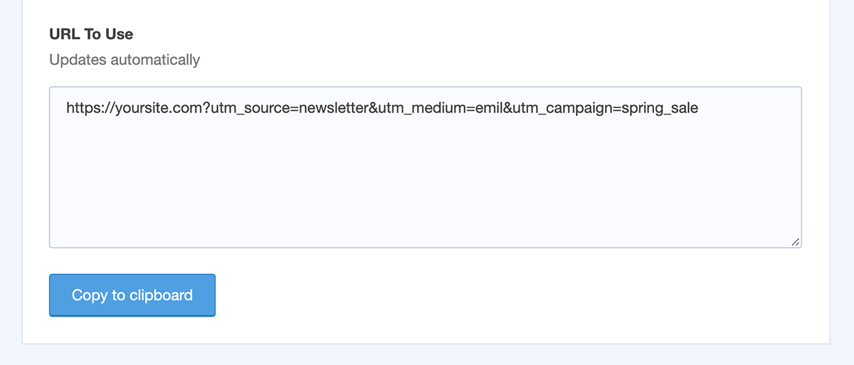 With MonsterInsights, you can easily create URLs with UTM tracking codes right in your WordPress dashboard.