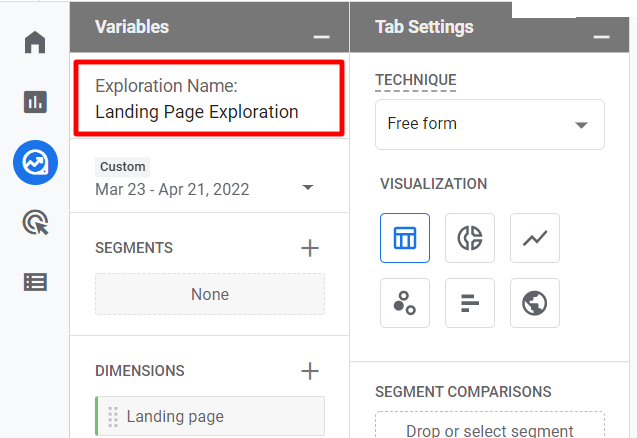 Give your report a name that you’ll recognize, like Landing Pages or Landing Page Exploration.