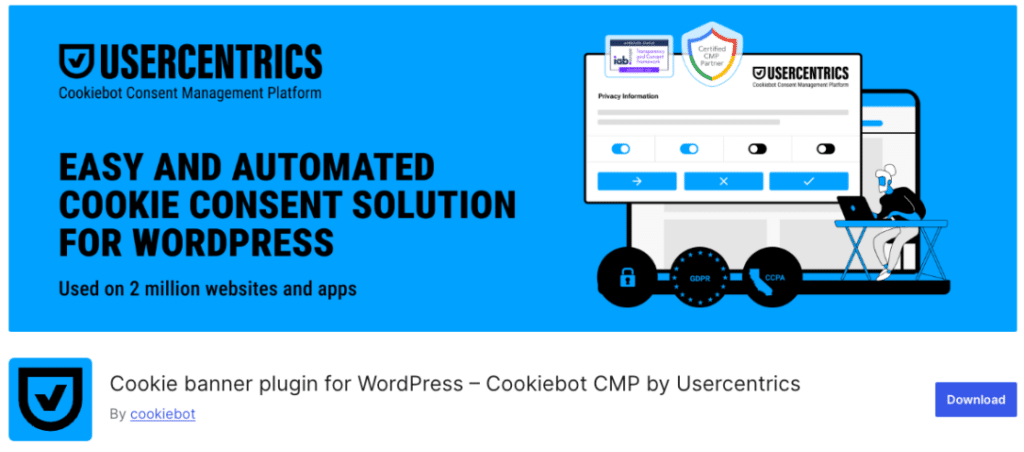Cookiebot is both a cookie compliance plugin and a consent management platform that automatically controls cookies and trackers, enabling full GDPR, LGPD, and CCPA compliance. It also helps build trust with website visitors by giving them more control over the use of their data.