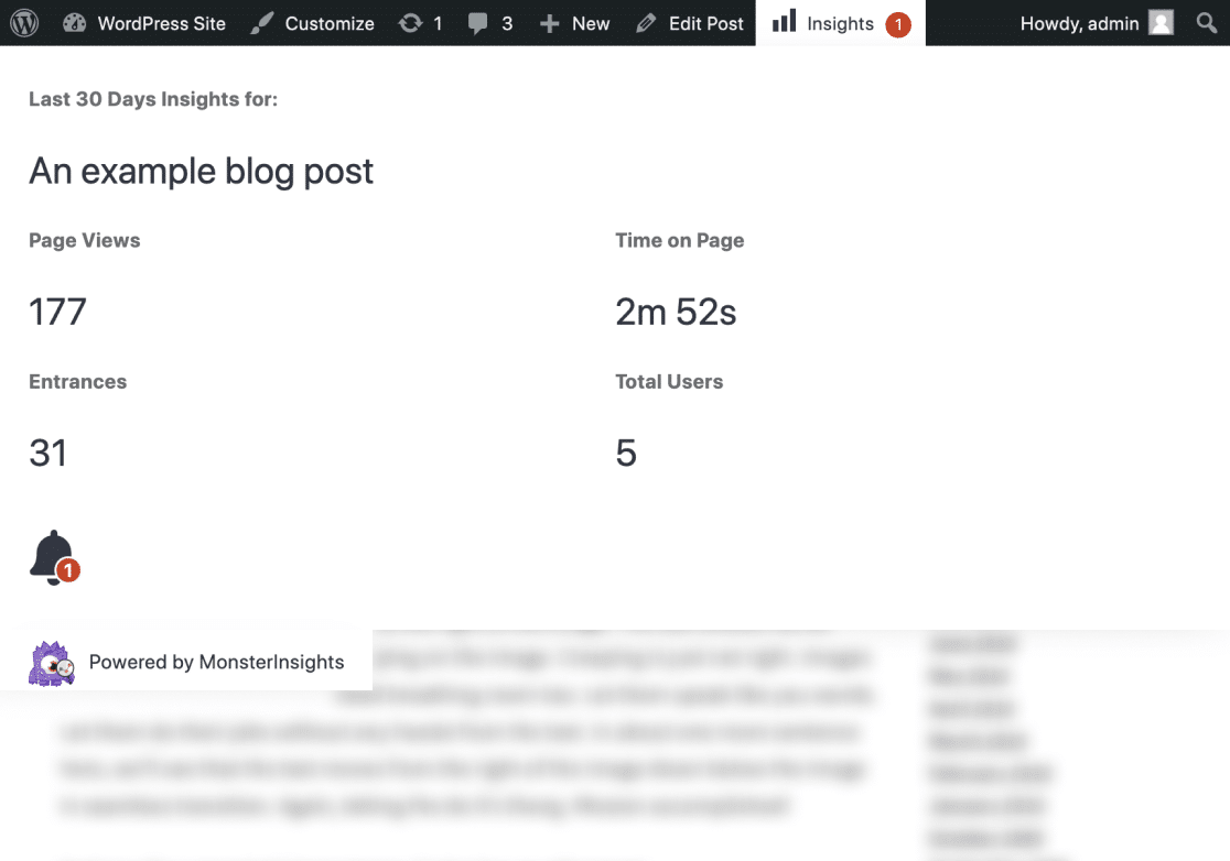 You can also easily access basic analytics data on a page-by-page basis in your WordPress toolbar while browsing your site, as long as you’re signed in.
