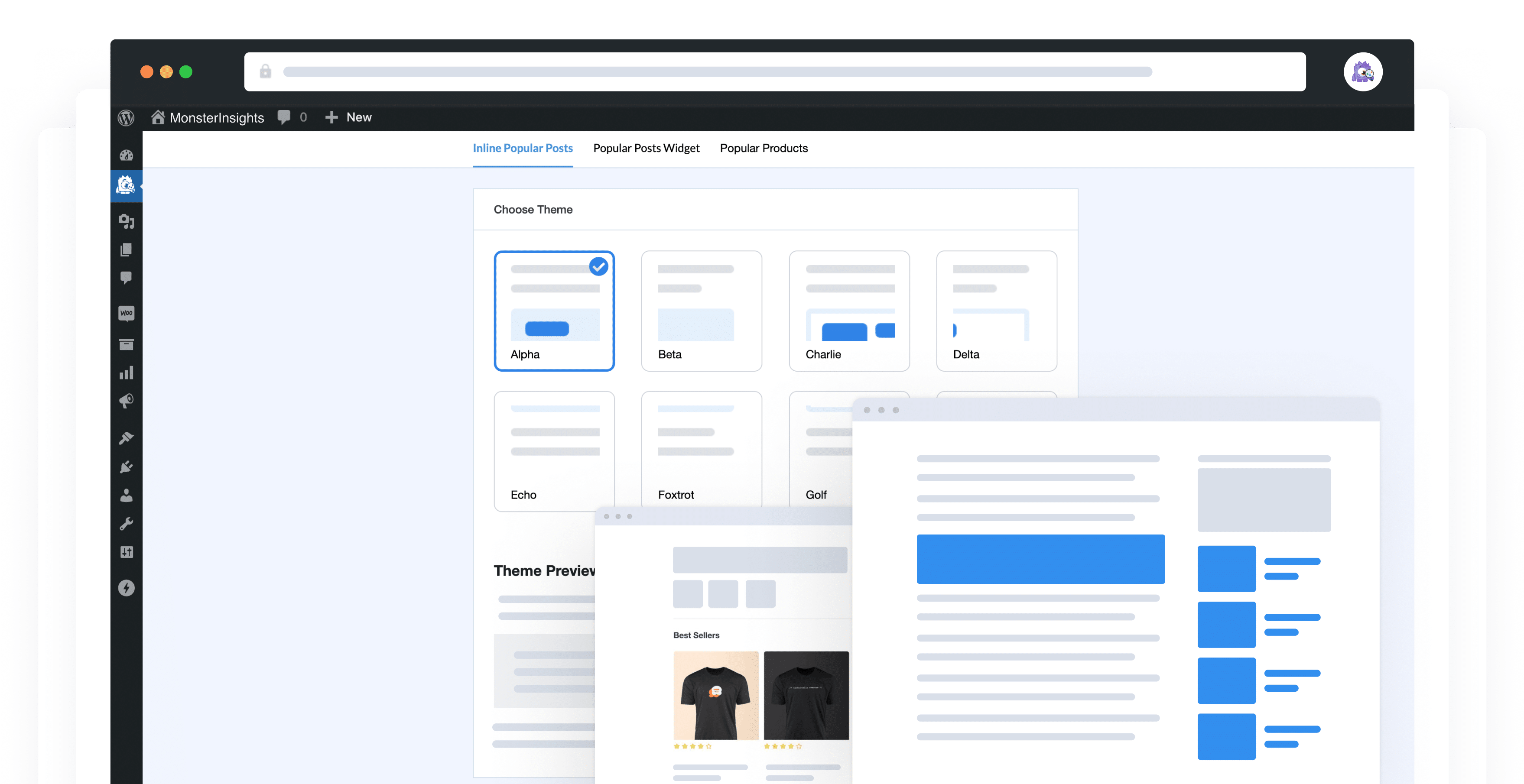 Customizing your Popular Posts and Products is a breeze with MonsterInsights. Choose from pre-built themes that seamlessly match your website’s design, and preview them instantly to find the perfect fit. Plus, select from wide and narrow layouts or grid and list style options for ultimate flexibility.
