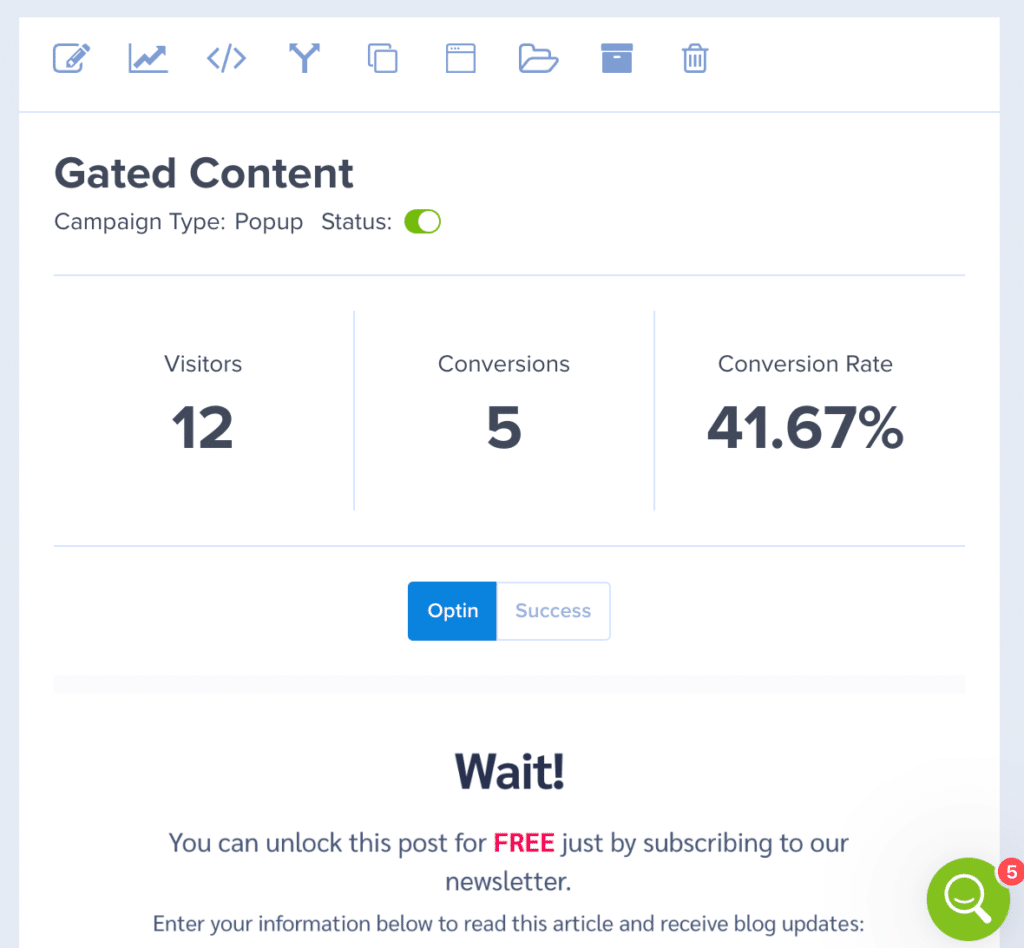 Once your gated content is available for long enough to collect a good amount of data, it’s time to analyze and optimize. If you’re using OptinMonster, you can use their built-in A/B testing functionality to try out different versions of your offer.