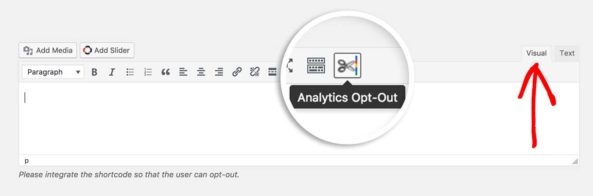 Step 2. Go to any page or blog post and click the Analytics Opt-out button in the visual editor.