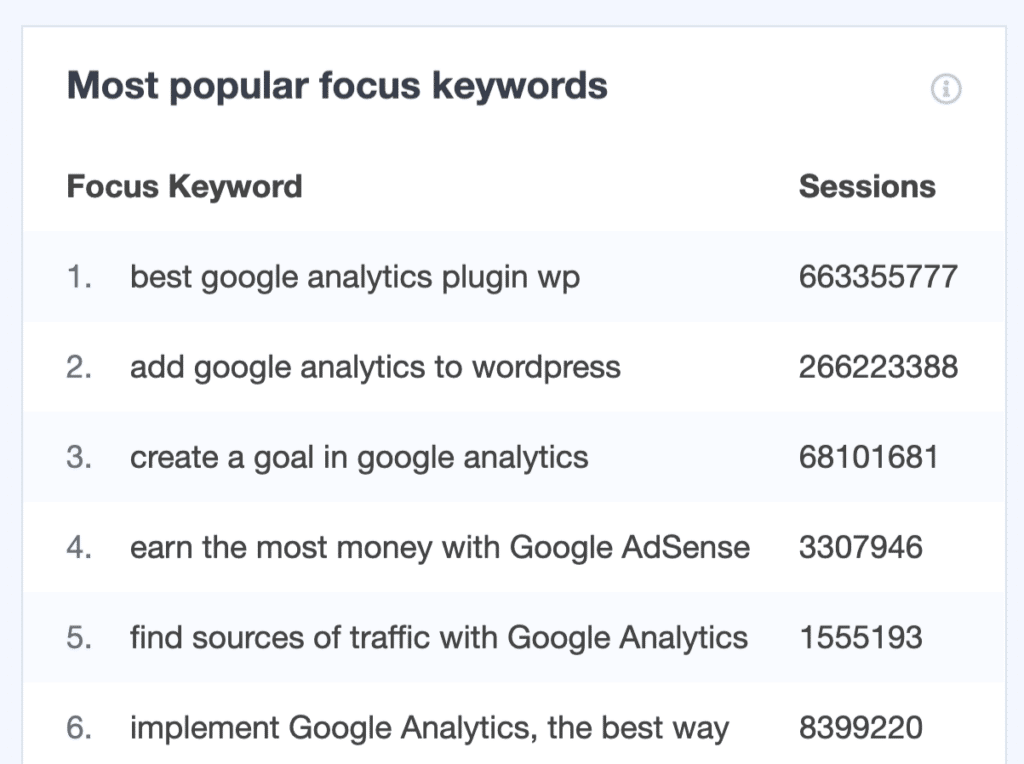 After configuration, MonsterInsights will start collecting focus keyphrase data for any posts or pages where you’ve entered a target keyphrase in Yoast.