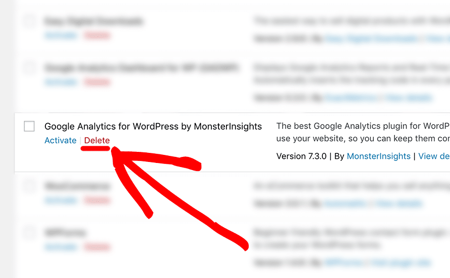 Now you can click the Delete link underneath it to remove it from your site completely.