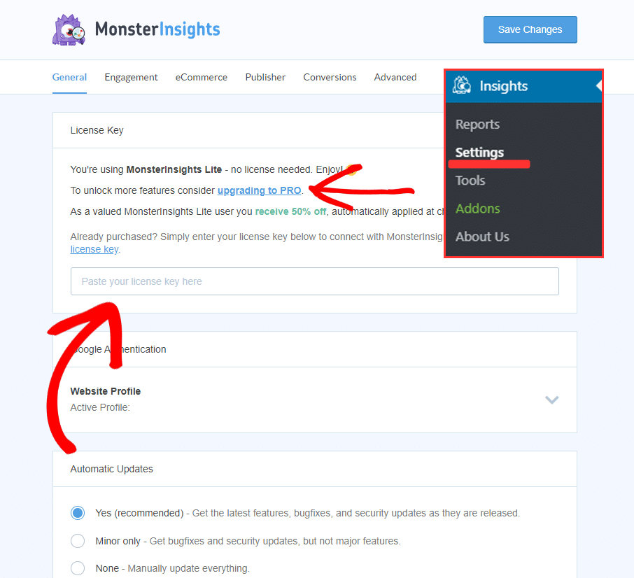 Thank you for using MonsterInsights Lite — the free version of our plugin! We’re glad you’ve decided to upgrade to MonsterInsights Pro. Upgrading to the premium MonsterInsights plugin will give you access to even more features and powerful addons. In this article, we will show you how to upgrade from the Lite version of our plugin — called Google Analytics for WordPress by MonsterInsights — to a paid license.