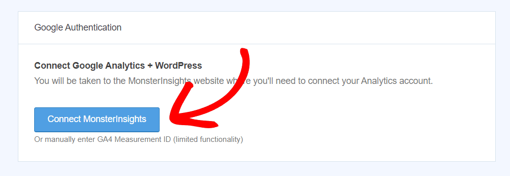 Next, click on the blue button, Connect MonsterInsights.