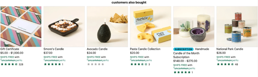 Here’s an example of a great “customers also bought” section from Uncommon Goods: