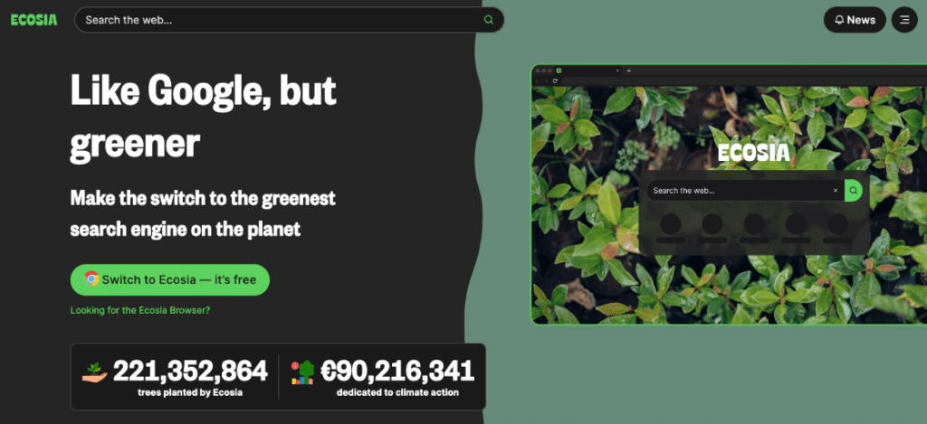 Want to help save the planet while you search? That’s exactly what Ecosia lets you do! This unique search engine turns your everyday searches into trees by using its advertising profits to fund reforestation projects worldwide.