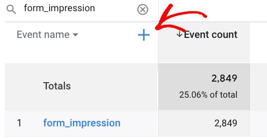 To see the form IDs on the Events report, click on the plus (+) icon next to the Event name column heading to add the form_id parameter as a report column.