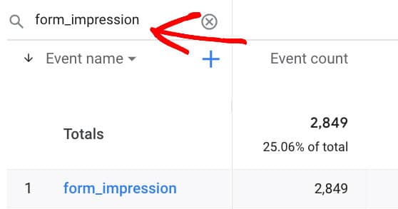 You can see more stats (e.g., real-time, geolocation, and parameter metrics) for each event by clicking on form_impression or generate_lead in the Event name column.
