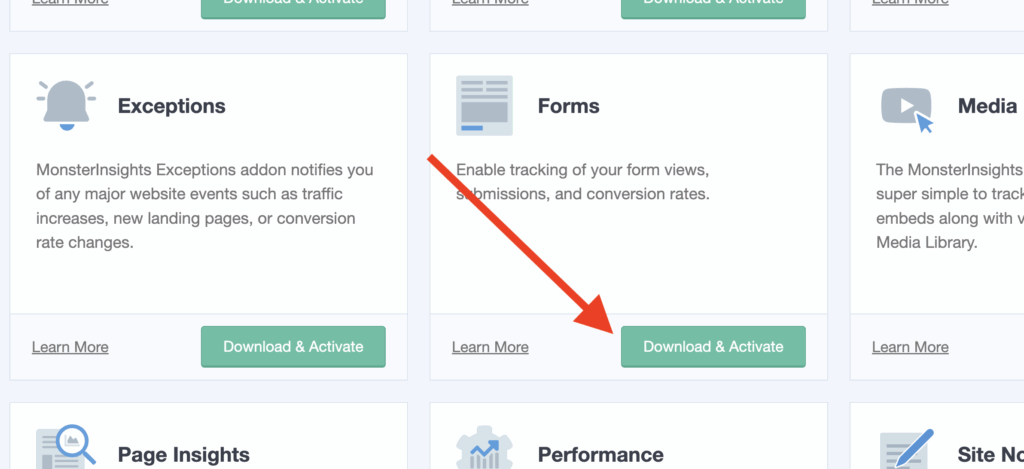 Then activate the Forms addon by clicking on the Download & Activate button.