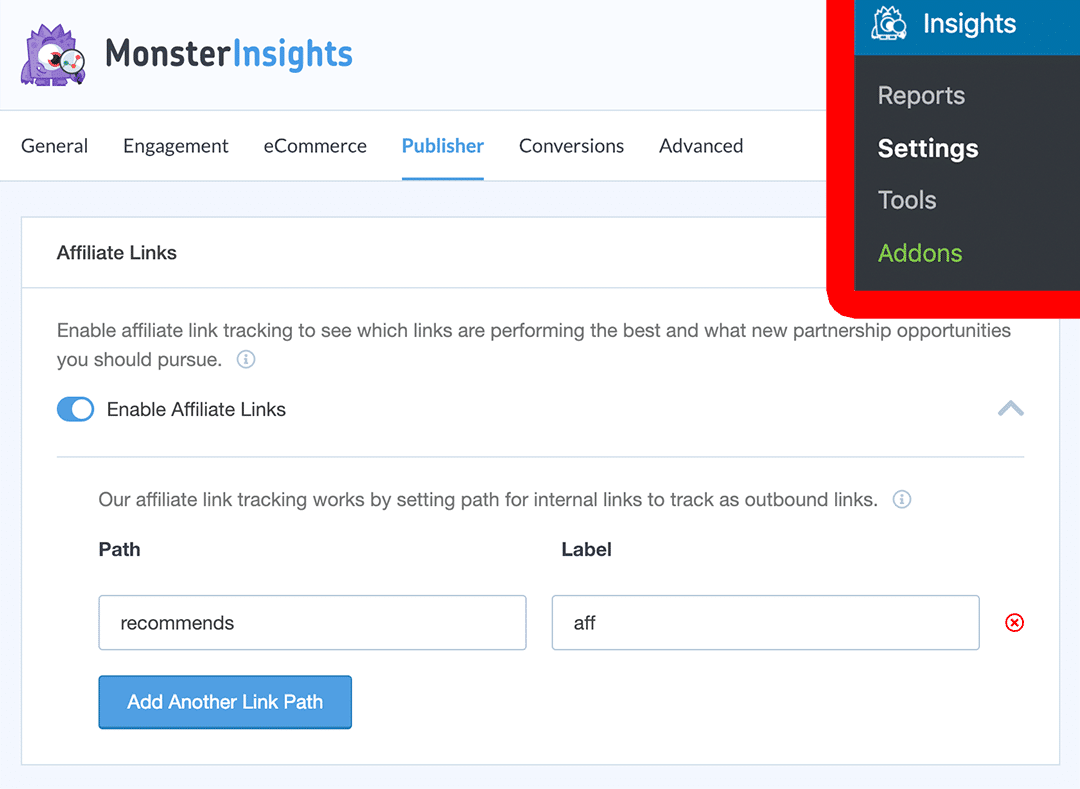 Once the setup is complete, you can view your affiliate links report by going to Insights » Reports » Publishers from your dashboard.