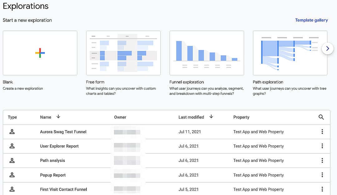 Explorations and Template gallery: Under the new Explore menu section is the Explorations page and Template gallery. Explorations is where to go for creating an Exploration.