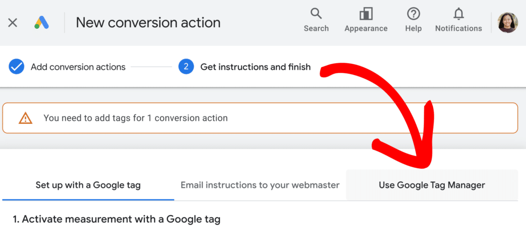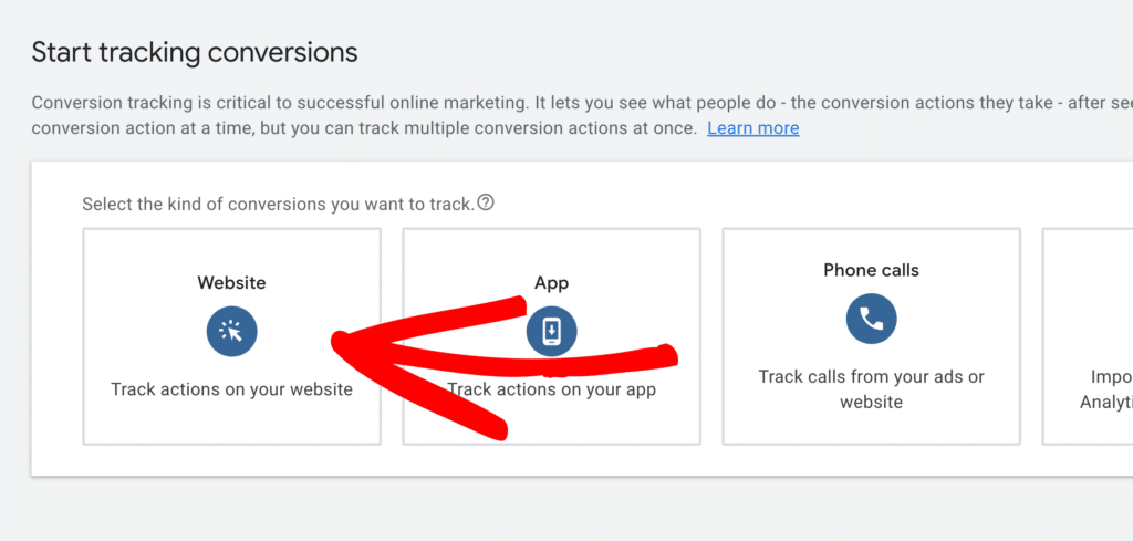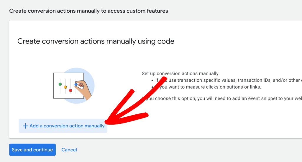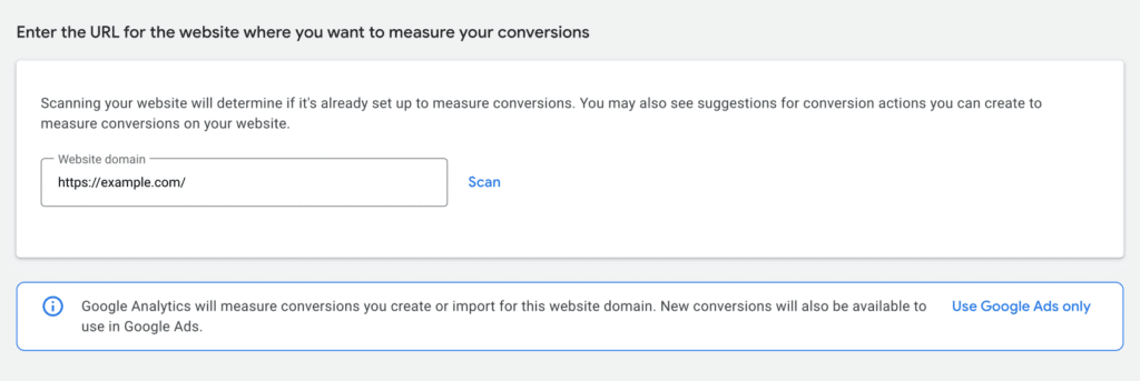 Note: If your Google Ads account is set to create conversions based on Google Analytics key events, please click on the link Use Google Ads only before continuing.