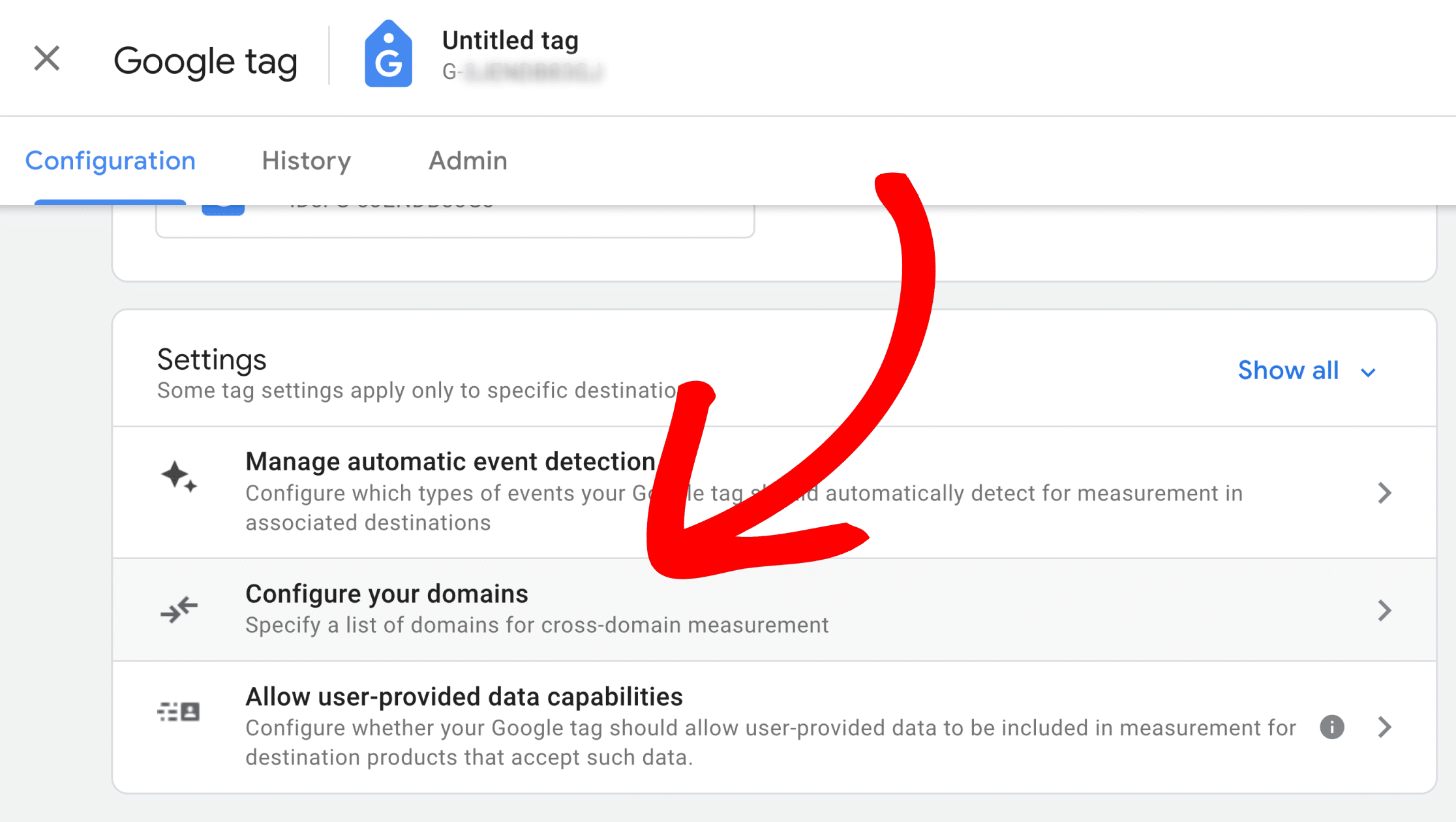 Then, scroll down to the Google tag section and click on Configure tag settings.