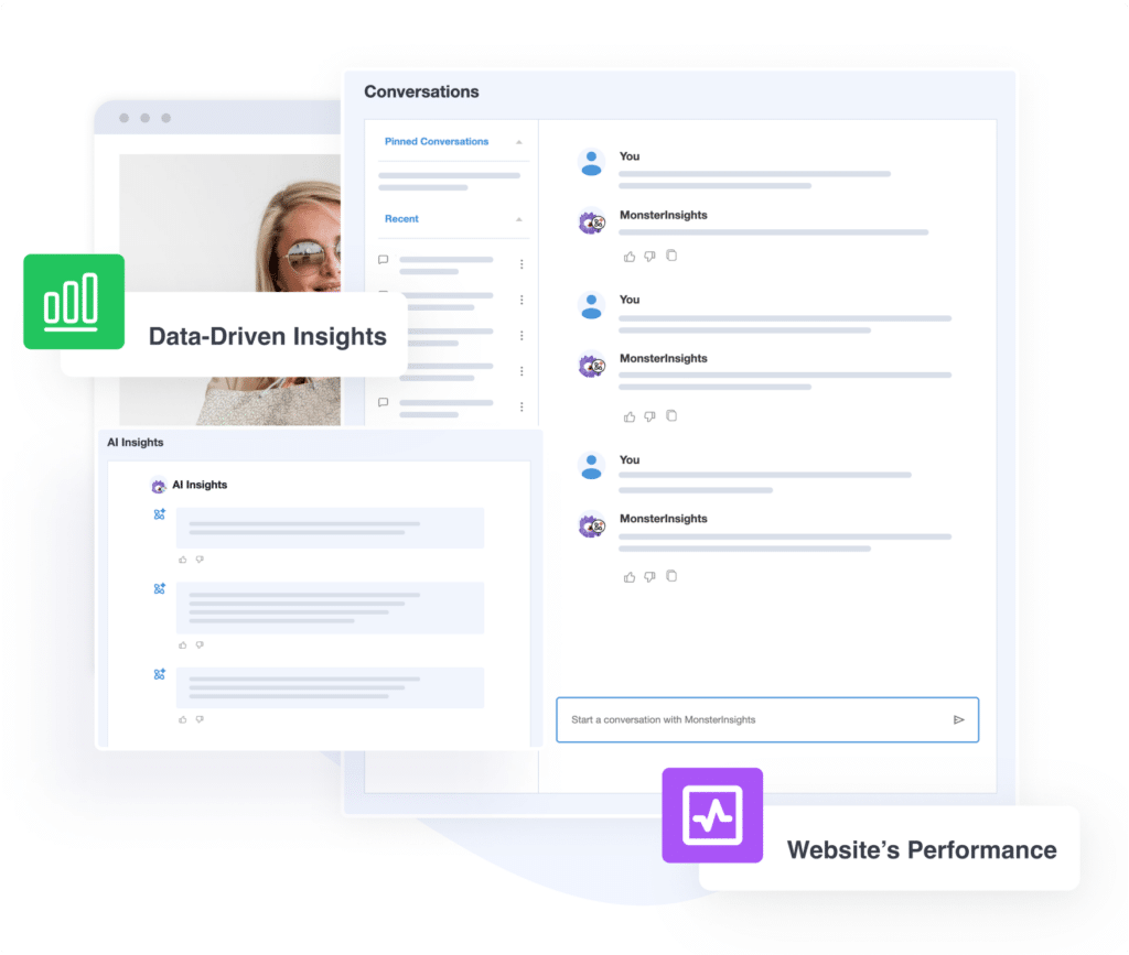 With MonsterInsights’ Conversations AI, you can ask questions about your website’s performance, from traffic trends to revenue insights and get an answer. Simply chat with the AI and get answers in real time – forget digging through reports.
