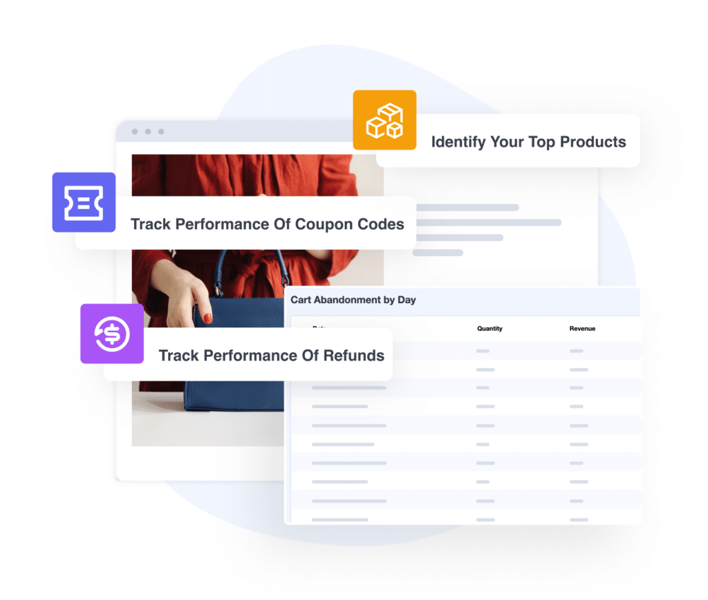 With MonsterInsights’ eCommerce tracking, you can easily access key metrics that improve your store’s profit. Track the performance of coupon codes, refunds, add-to-carts, abandoned checkouts, and even identify your top products.