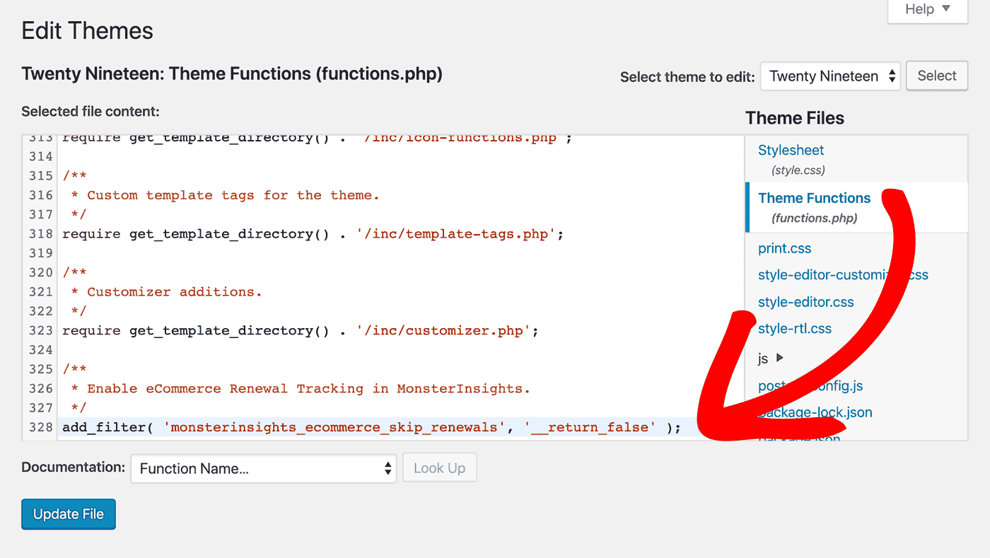 Step 3: Navigate to your theme’s functions.php file.