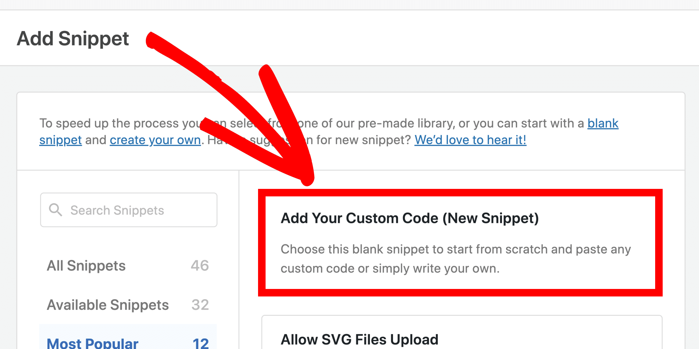 Step 2: Locate the Code Snippets menu item and click Add New.