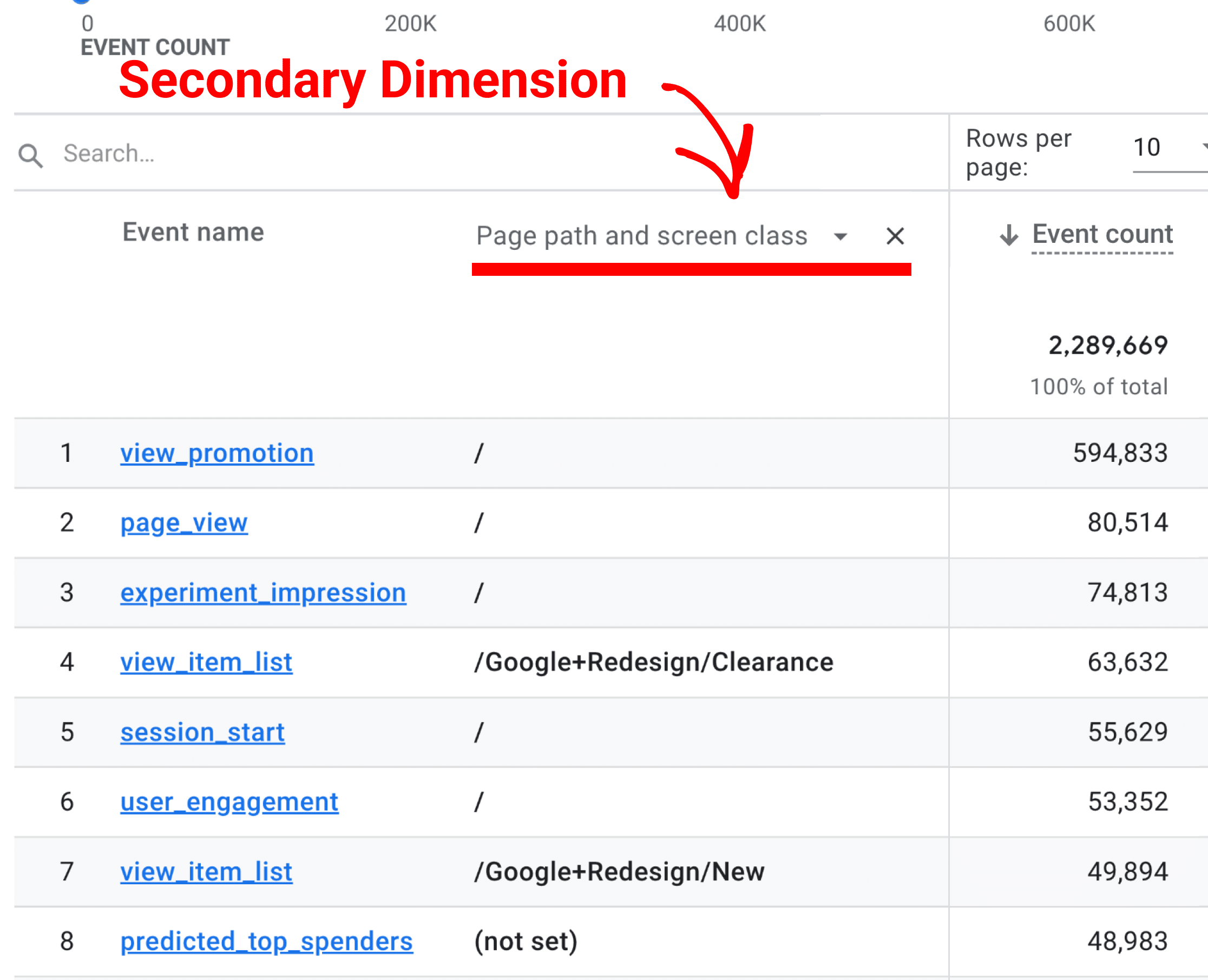 Adding a secondary dimension helps sort or aggregate your detailed report.