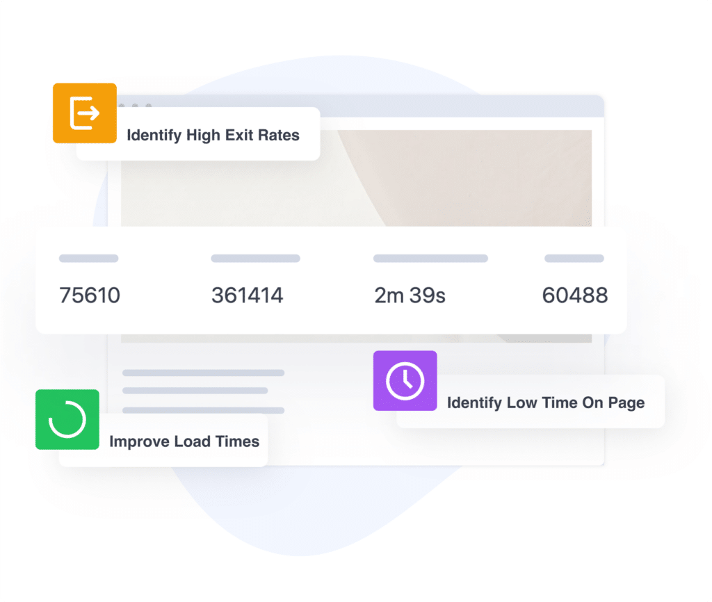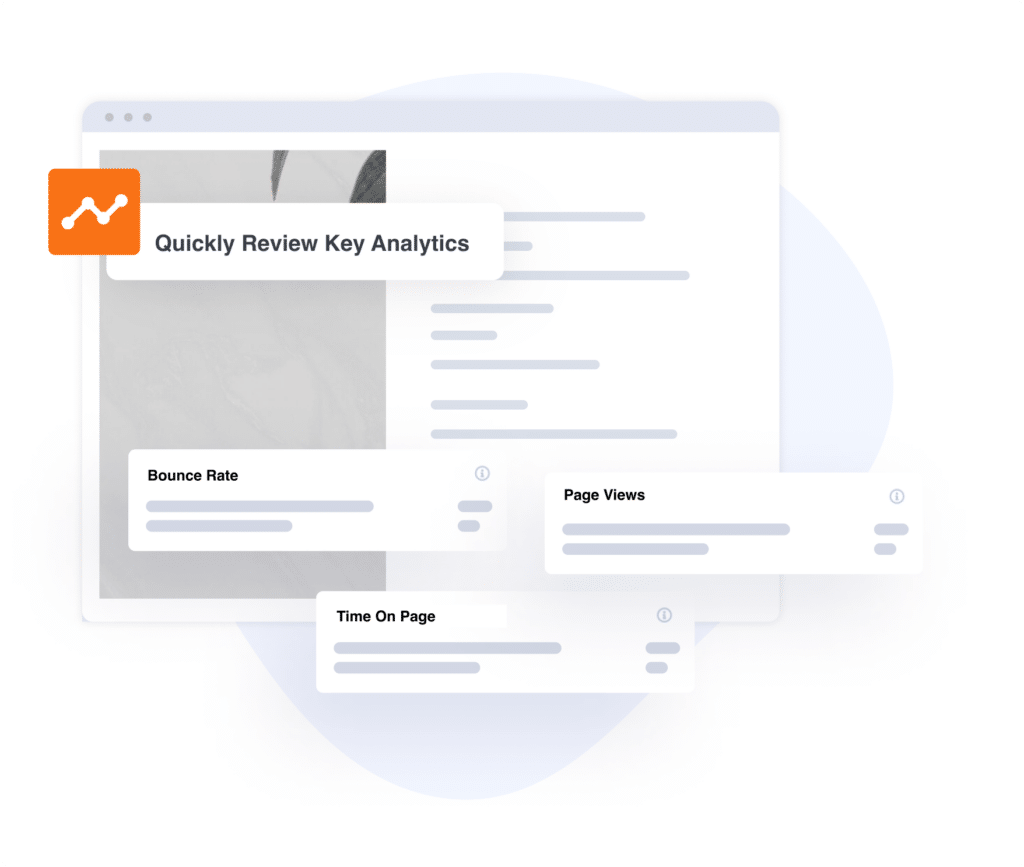 View detailed performance insights for each page right from your dashboard or page. Track key metrics like pageviews, time on page, entrances, bounce rate, load time, and more for the last day or 30 days.