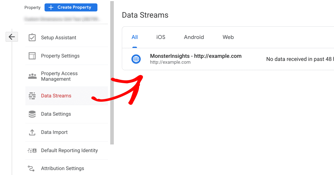 Then, click on the data stream that you want to verify the Measurement ID of.