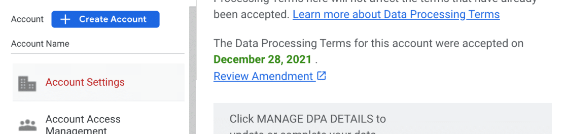 If you are not seeing this section, either you, someone with access to your account, or Google themselves have already opted you in. Or Google does not offer the DPA in your jurisdiction.
