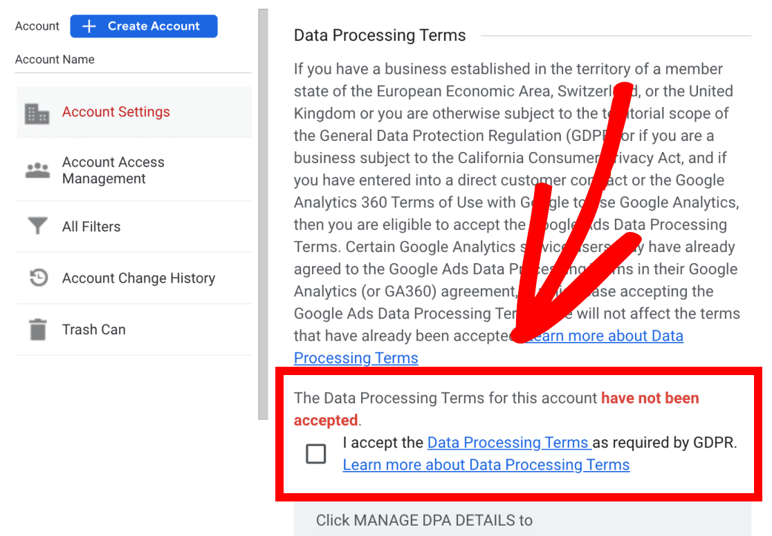 There is also a checkbox to accept the Data Processing Terms at the bottom.